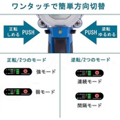 正回転(締める時)状態で機能スイッチを押すと、2段階でトルクパワーの調整をすることができます。