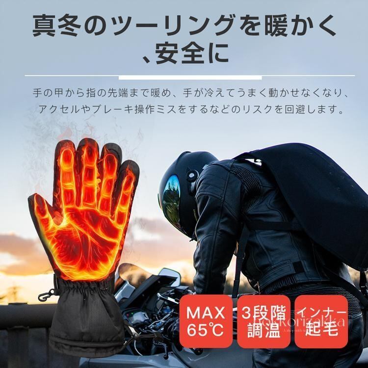 電熱グローブ バイク 電熱手袋 滑り止め 充電式 ヒーター手袋 防寒 メンズ手袋 発熱 撥水 防風 3段階調温 即暖 省エネ 裏起毛 スマホ操作 男女兼用 2024新作